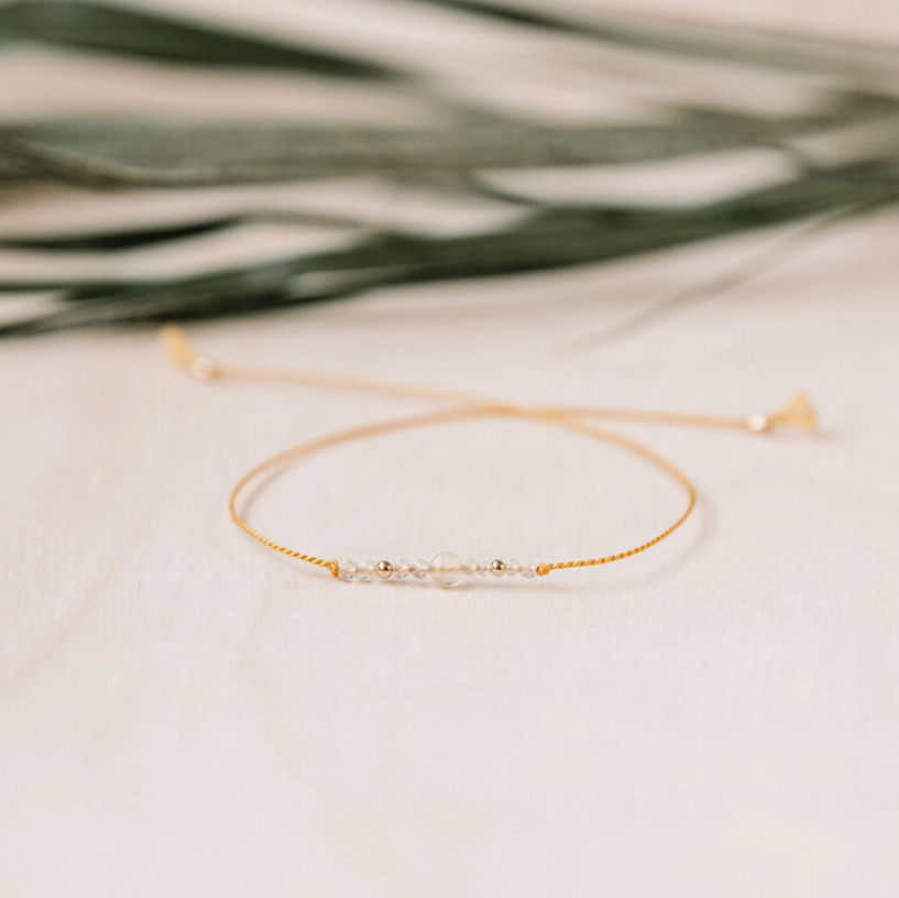 Beautiful, dainty and minimalistic string bracelet made from 100% silk string and natural clear quartz and faceted 2mm citrine crystal.