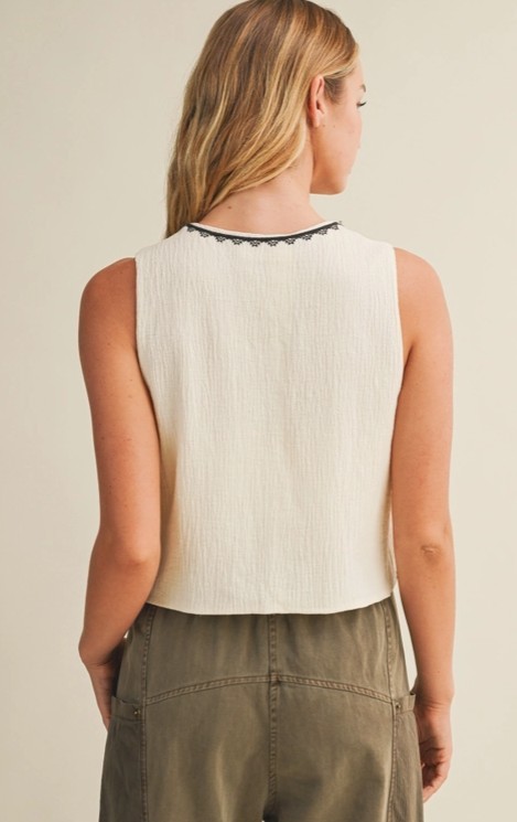Perfect Boho vest, embroidered with cute ties. Wear over are as a stand alone.