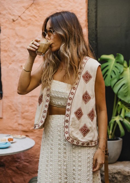Introducing our Sage Vest - with unique burgundy embroidery, turning this vest into a true statement piece. Crafted from lightweight cotton, it ensures a relaxed, laid-back fit, ideal for embracing comfort while effortlessly making better any outfit. Get creative and layer it over your favourite shirt or dress.